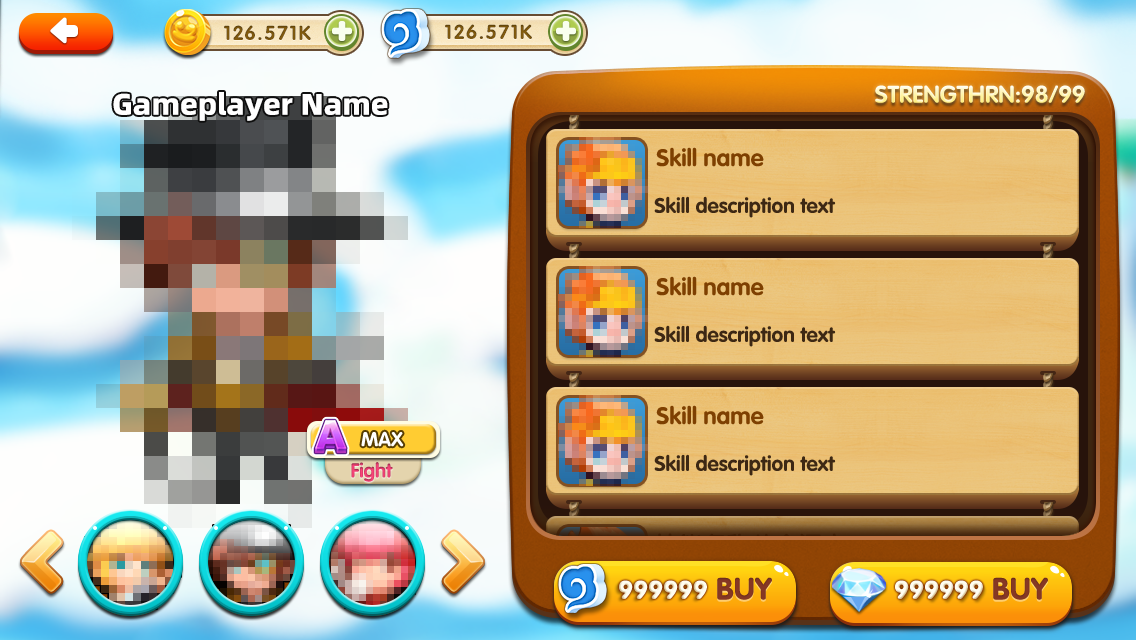 - 🖼️ Complete Screens: Includes mockups for Settings, Character Info, and Level Selection.